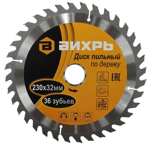 Диск пильный по дереву 230х32 мм 36 зубьев+кольцо 30/32 Вихрь (73/10/4/8)