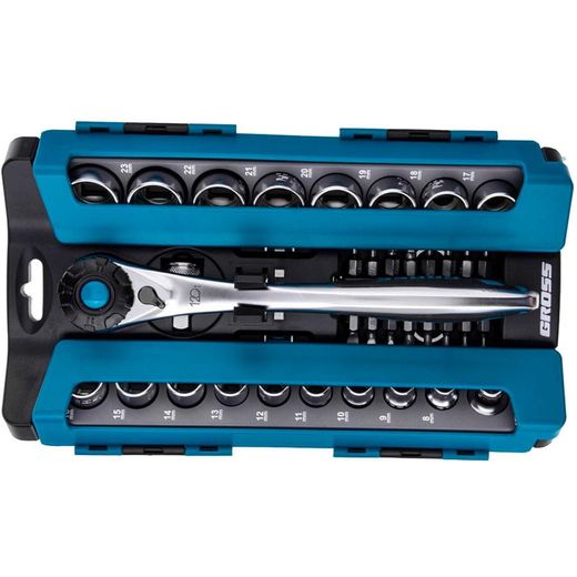 Набор торцевых головок Gross 36 предметов CrV 1/2", 3/8”трещотка 120 зубьев (14145M)