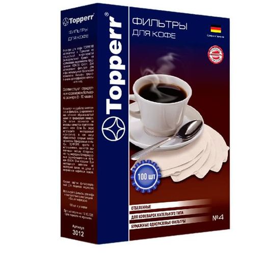 Фильтры бумажные для кофе Topperr 4/100 отбеленные,3012