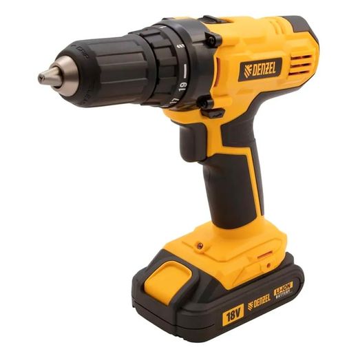 Дрель-шуруповерт Denzel CDL-IB-18-02, Li-Ion, 18 В, аккумуляторная 2 АКБ (26113M)